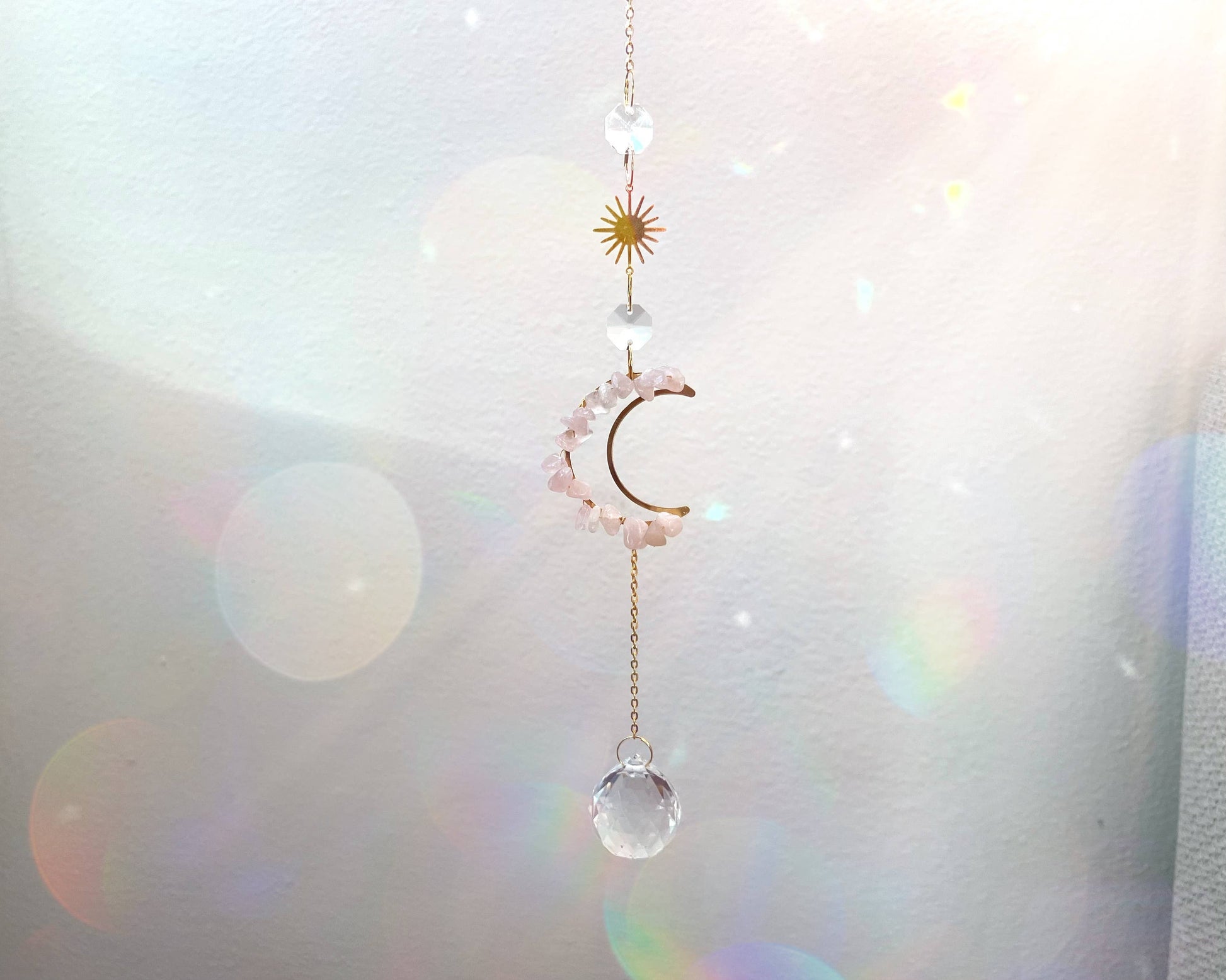 Moon Rose Quartz Crystal Suncatcher Rainbow Prism